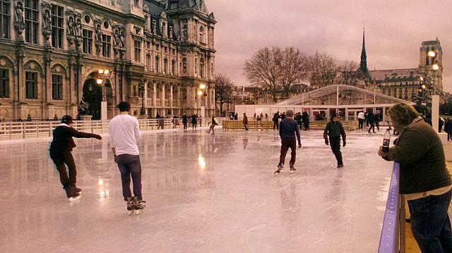パリ市庁舎前の広場には、毎冬スケートリンクが設置されます!